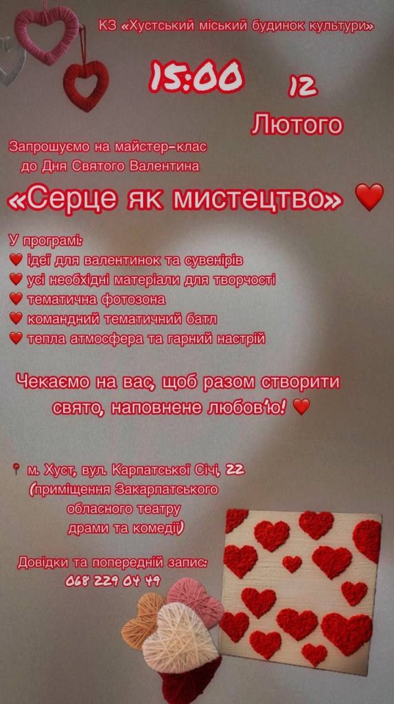 До Дня Святого Валентина у Хусті проведуть майстер-клас «Серце як мистецтво»