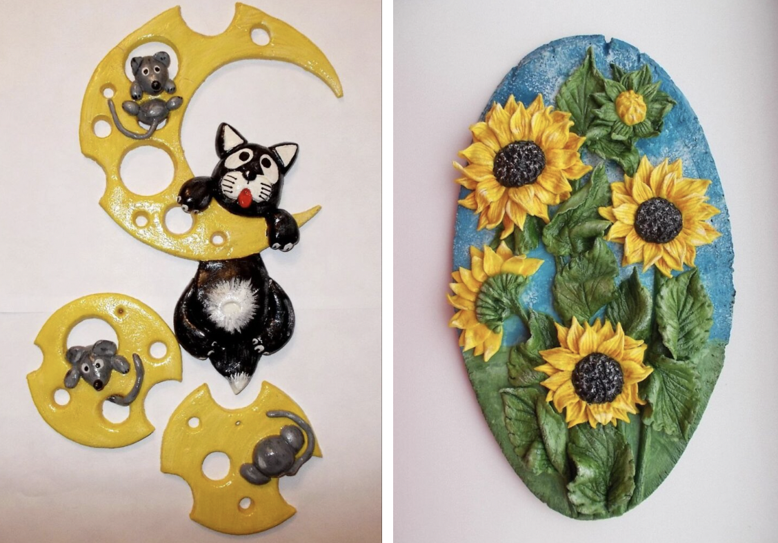 «Я спеціалізуюся переважно на декорі для дому та на іграшках для сина. Прикраси не цікавлять, а для роботи над картинами поки не вистачає досвіду. Хоча пробувала… але треба ще вчитися. Робота над одним виробом займає декілька годин. Проте я ліплю одразу декілька, потім їх сушу, а відтак розфарбовую. Кожен етап цікавий по-своєму. Утім найбільше подобається усе ж декорування. Вироби не продаю, все ліплю для родини, хоча часто дарую їх друзям, яким вони сподобалася», – каже Наталія.