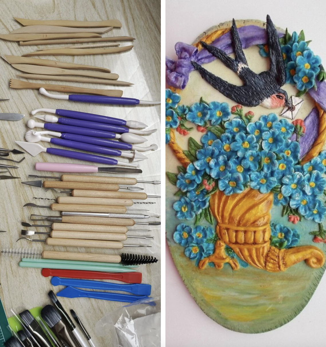 «По-перше, чоловік у мене стоматолог. Тож я відібрала у нього усі «списані» ним інструменти. Вони ідеальні для ручної роботи. Я ж – майстриня манікюру, тож свої непотрібні палички, кусачки, ножиці, пилки, фрези теж задіяла. Крім того, потрібні магазинні молди, а також зубочистки, вейнери, стеки, дошка для роботи та все, що вдома знайдеться, навіть голки, гребінці та плоскогубці. Але найкращий інструмент – це власні руки. Досвід приходить із часом. А дитину залучаю до процесу, аби розвивалася моторика пальців. Готові вироби покриваю лаком. Таким чином вони стають міцними і можуть зберігатися протягом тривалого часу», – зауважує умілиця.