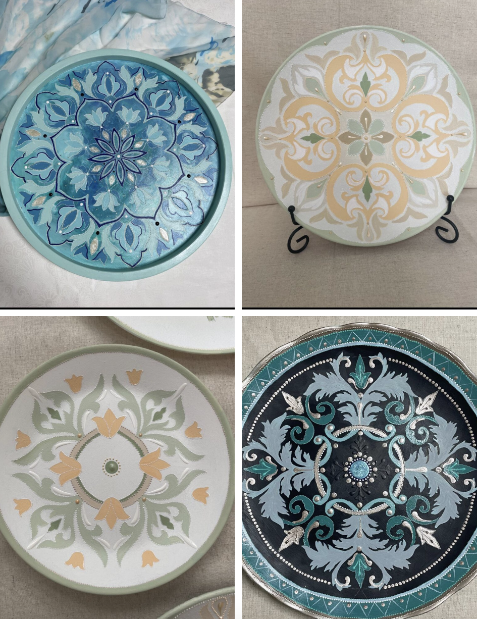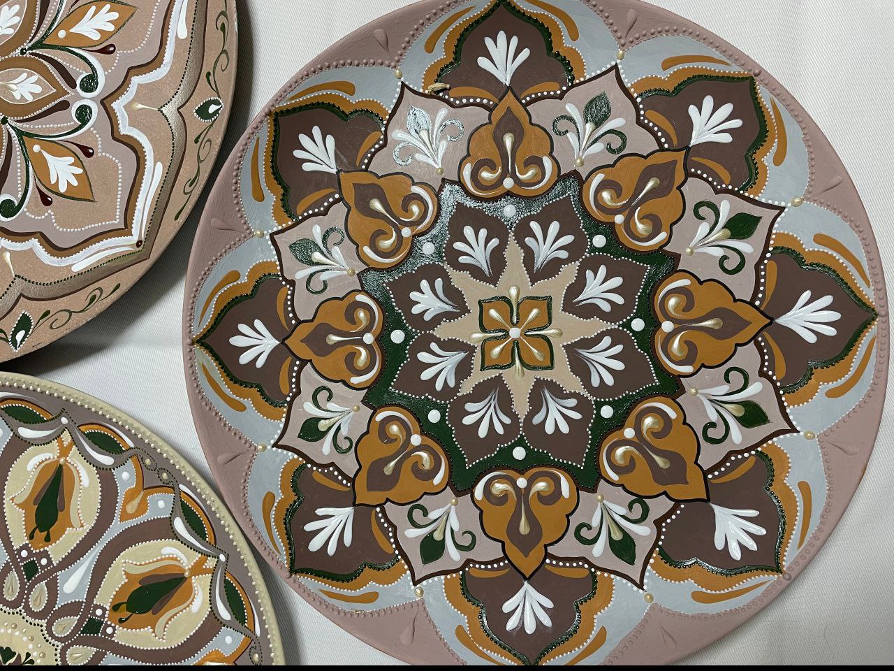 «У творчості серйозно я шість років. Виліпила приблизно дві сотні виробів, розписала десь 300. Готові речі продаю. Покупців шукаю переважно за кордоном. Крім того, і далі працюю на основній роботі. Поки тільки займатися розписом не можу собі дозволити. Керамікою я так і не займаюся, бо піч дорога. Вироби або досі ліплю з полімерної глини, або купую готові, наприклад, чисто білі тарілки та розмальовую їх. Технік нині існує розпису дуже багато. То – ціла наука. І мені шкода, що не здобула фахову освіту. Але багато що мені вже вдалося опанувати самотужки. Деякі узори вигадую, деякі наношу класичні. Розпис – як писанкарство, кожен символ може мати певне значення. Наука дуже об’ємна і цікава», – зізнається умілиця.