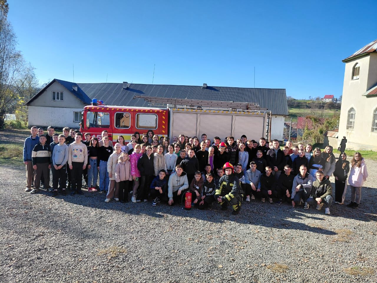 На завершення школярі побачили пожежно-рятувальний автомобіль та його оснащення, приміряли бойовий одяг вогнеборця, посиділи за кермом спецмашини та загасили умовну пожежу під наглядом рятувальників.
