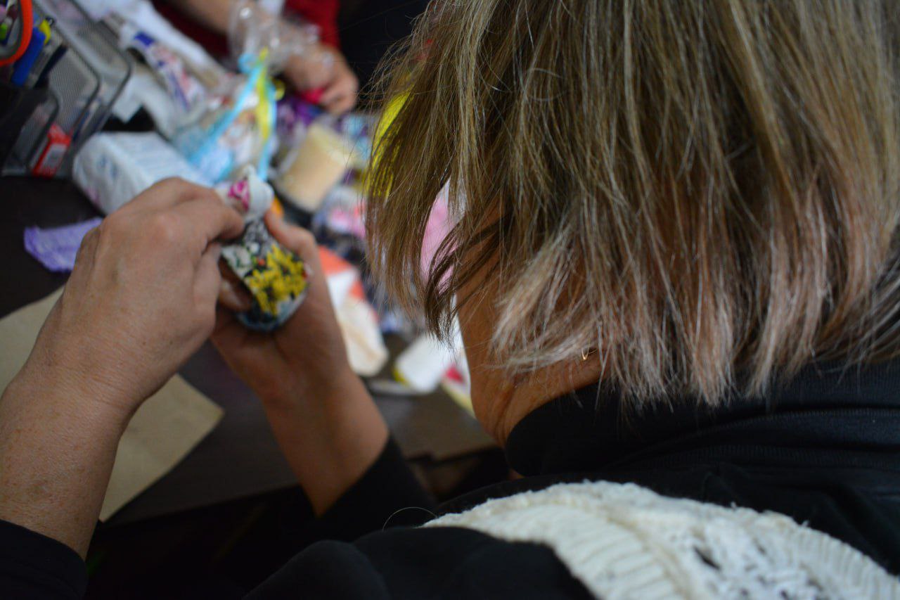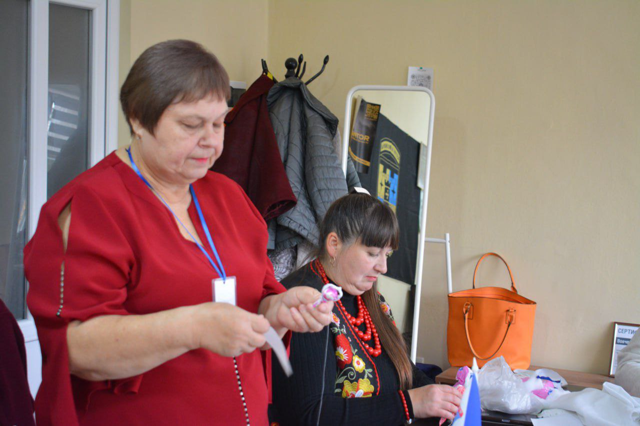 За словами пані Ольги, яка власне і проводила майстер-клас, сама вона захопилася таким видом рукоділля вже після евакуації з зони бойових дій. Загалом вона людина неймовірно творча, хоча за фахом – технар, має три вищі освіти.