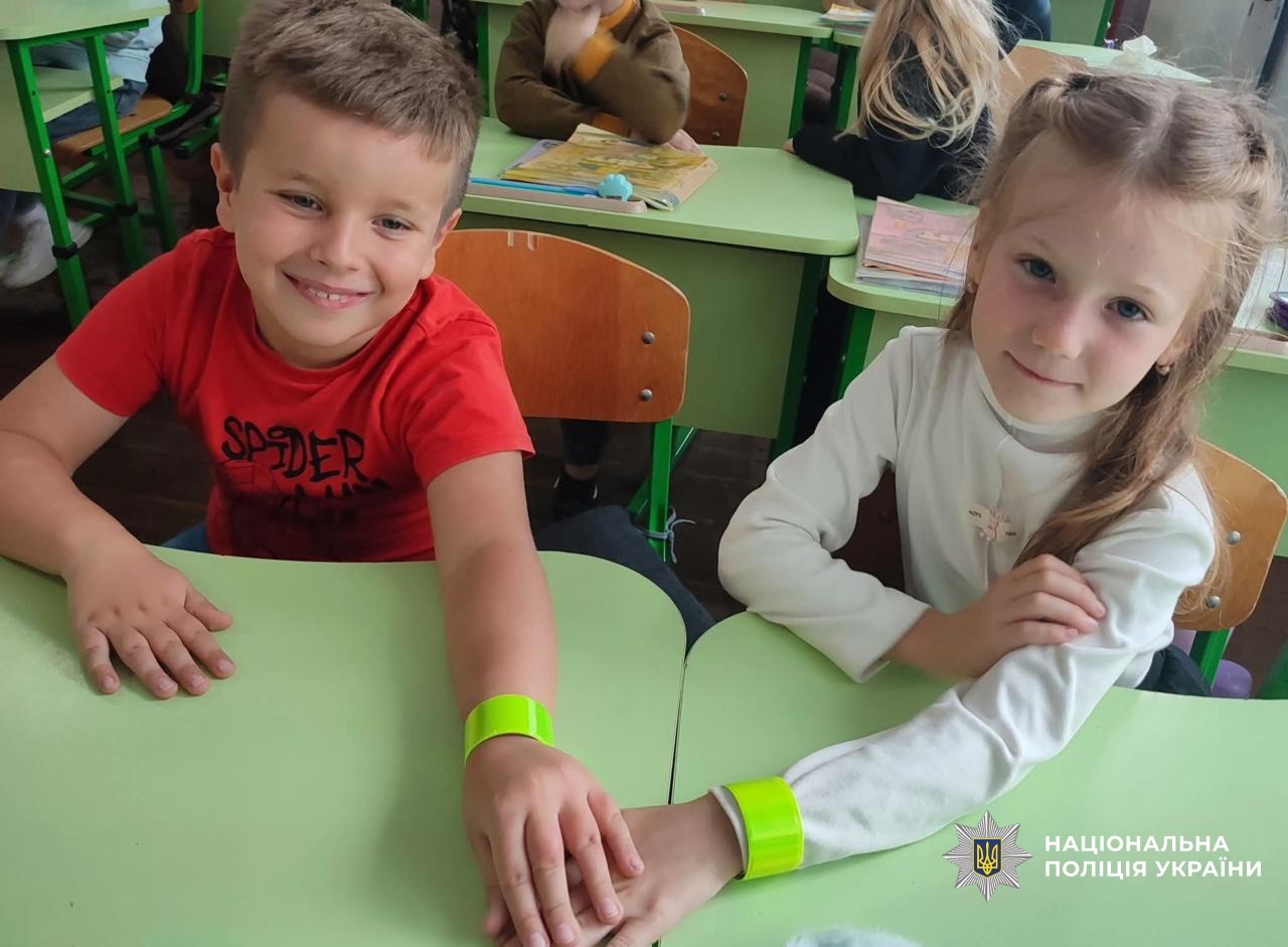На завершення зустрічі кожен першокласник отримав від поліцейської світлоповертальний браслет. Такі аксесуари допоможуть зробити дітей більш помітними для водіїв у темну пору доби та стануть додатковим елементом їхньої безпеки.
