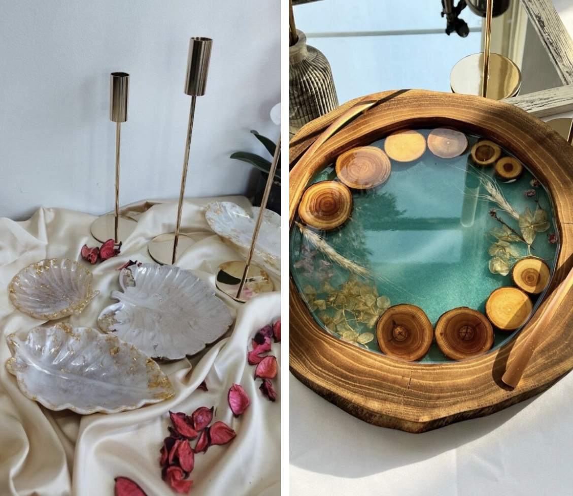 З епоксидної смоли хустянка створює сувеніри і меблі