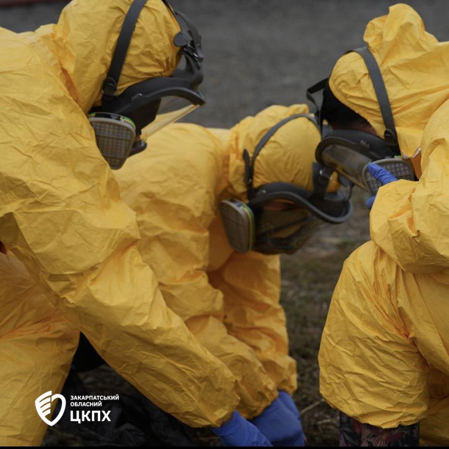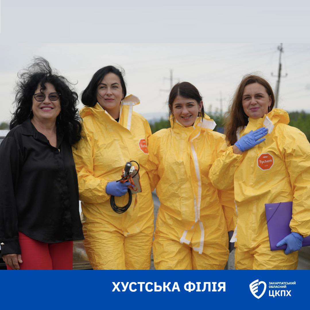 Група швидкого реагування на надзвичайні ситуації протихімічного захисту Хустської філії ДУ «Закарпатський ОЦКПХ МОЗ України» – завідувачка санітарно-гігієнічної лабораторії Мирослава Гарастей, фельдшерки-лаборантки Лариса Поп та Віта Бонь – взяли участь у відпрацюванні алгоритму реагування у сфері цивільного захисту населення.