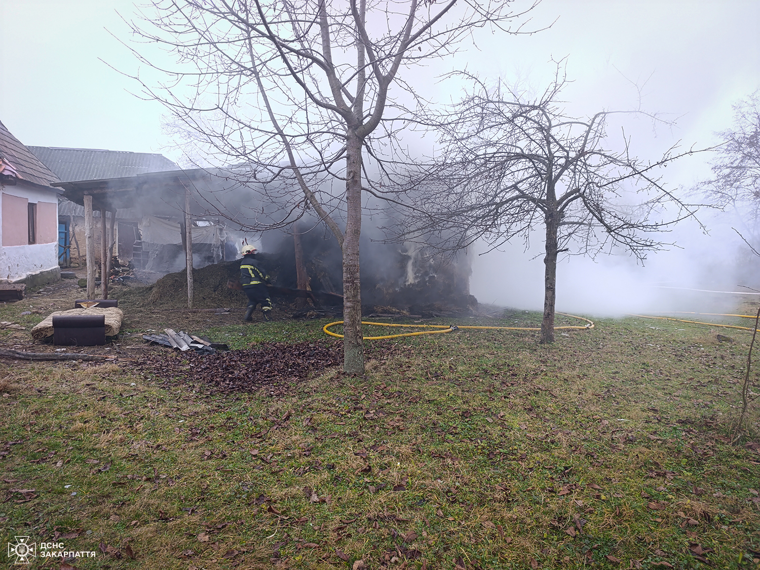 8 грудня о 10:04 до Служби порятунку надійшло повідомлення про пожежу навісу з сіном на вулиці Березнянській у селі Ільниця Хустського району.