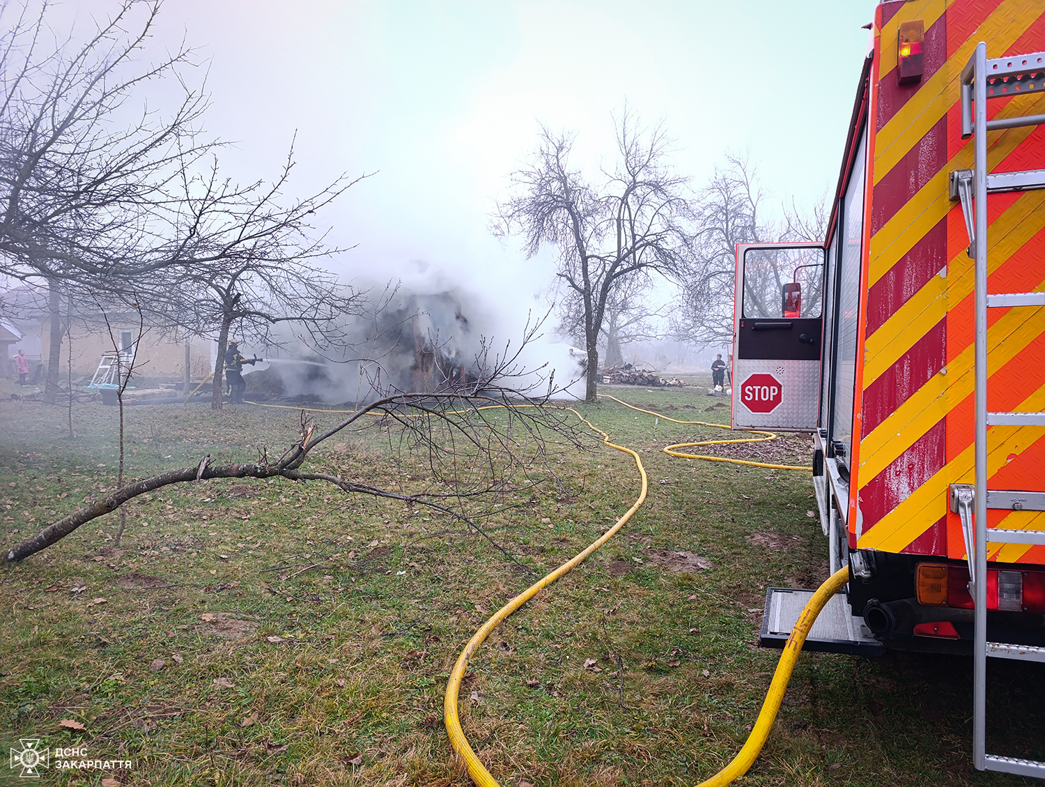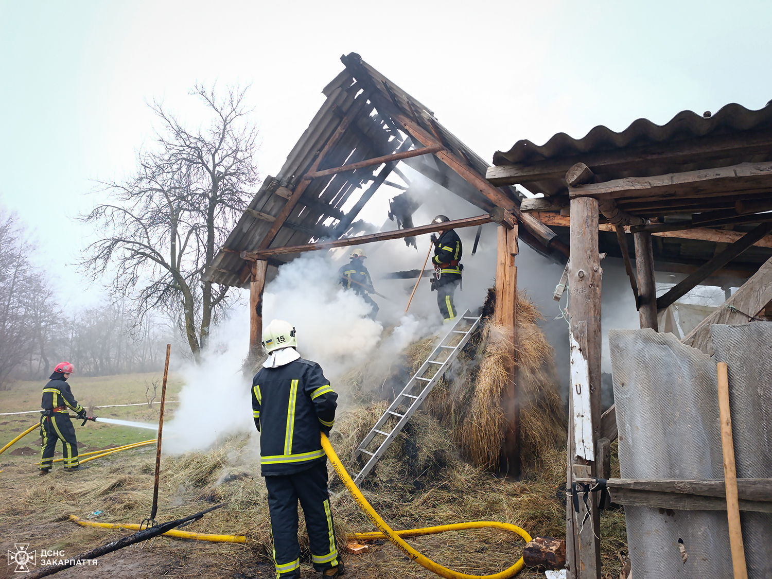 8 грудня о 10:04 до Служби порятунку надійшло повідомлення про пожежу навісу з сіном на вулиці Березнянській у селі Ільниця Хустського району.