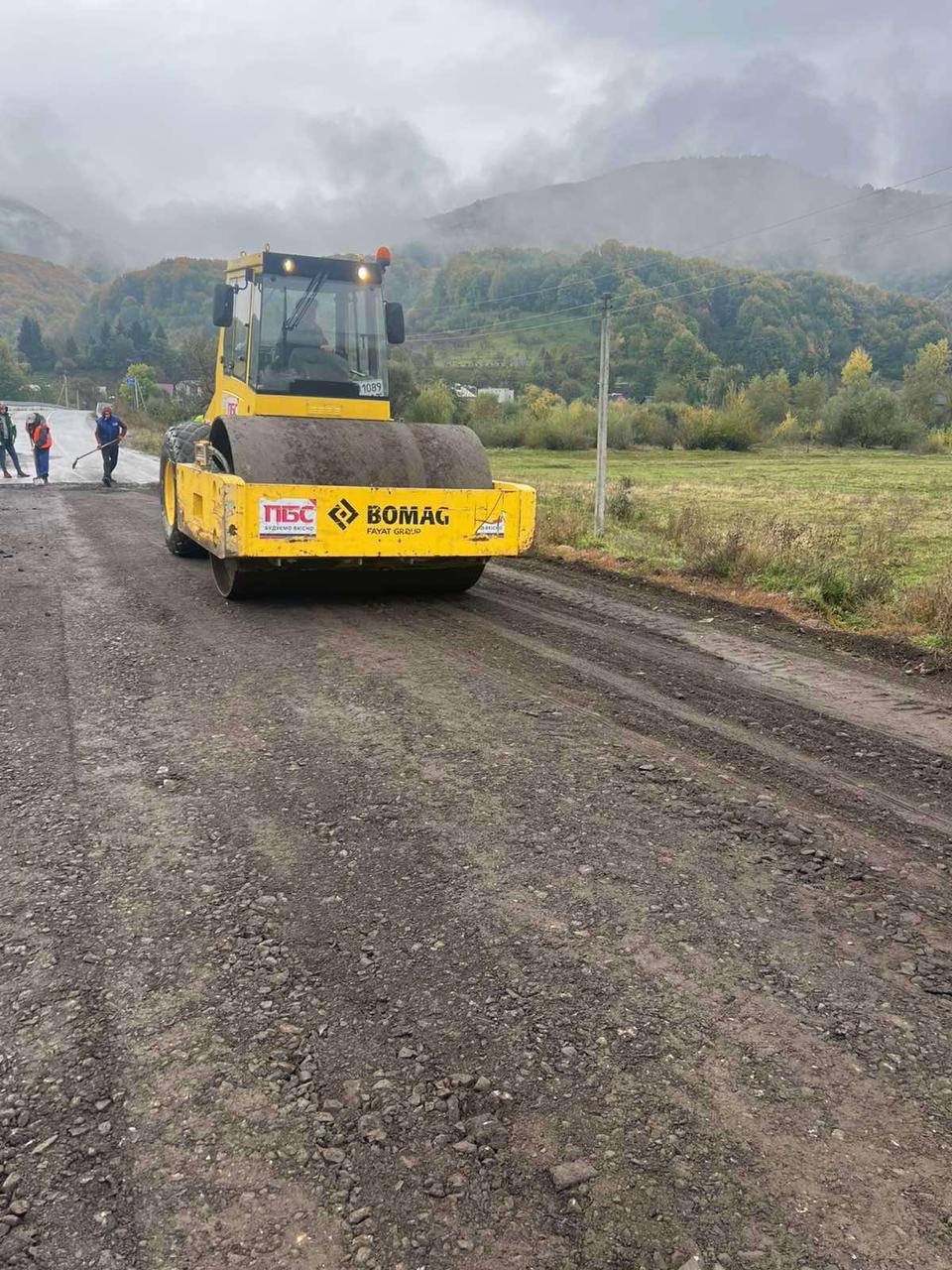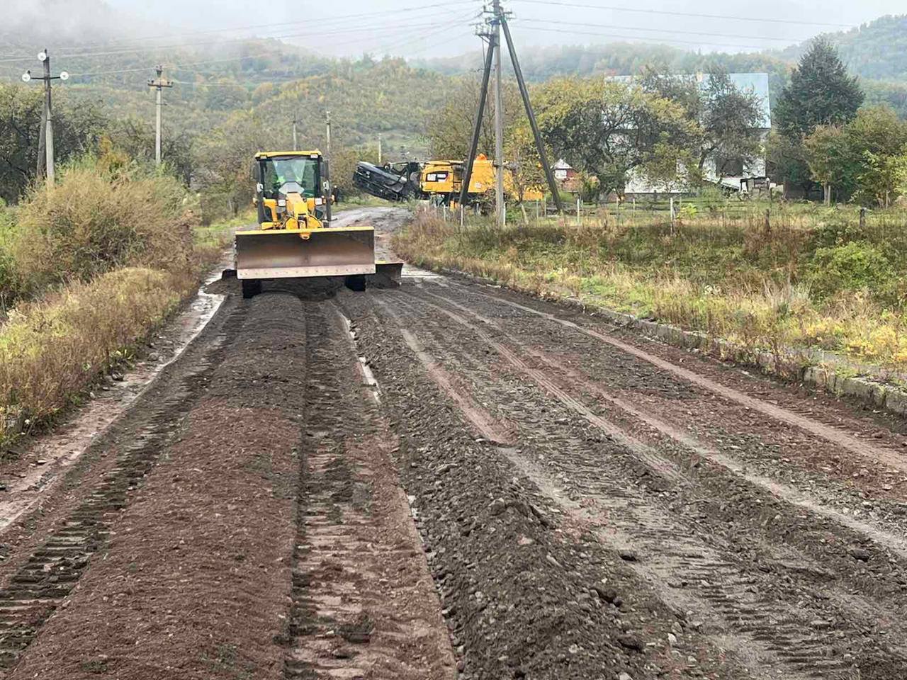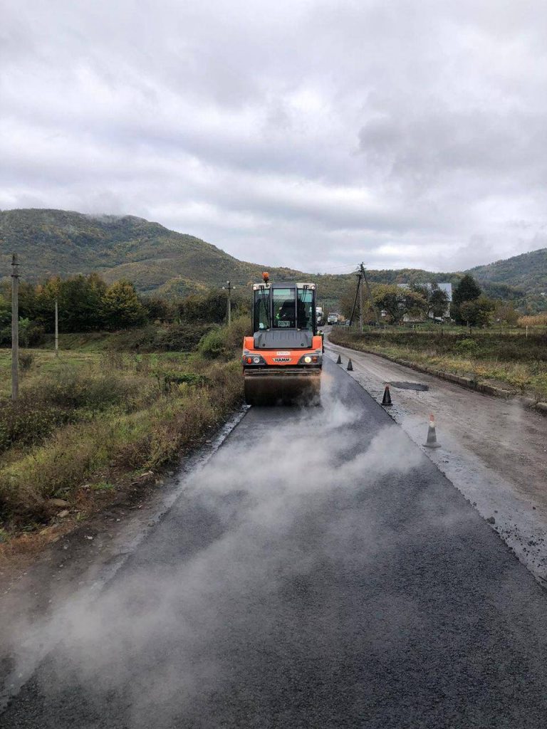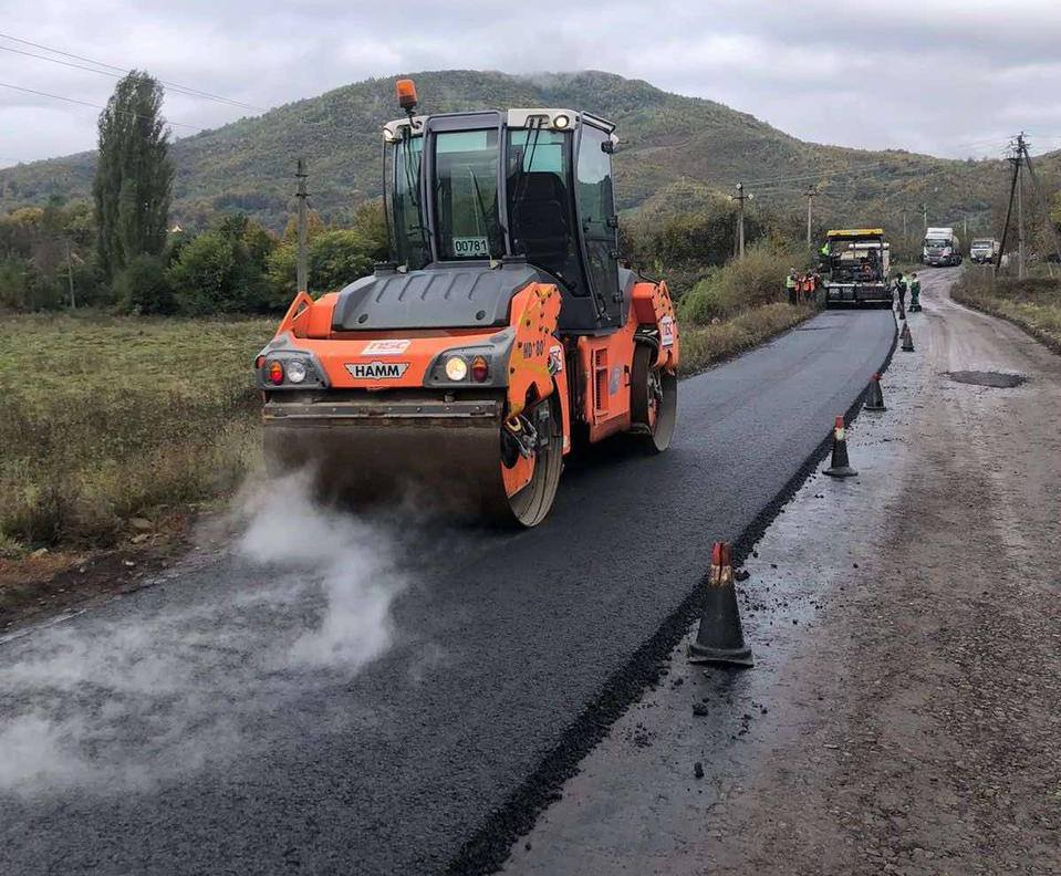 На автошляху С-071323 Березово – Ряпідь підрядна організація Служби місцевих автомобільних доріг у Закарпатській області виконує роботи з розпушування, планування та ущільнення основи дорожнього полотна, після чого розпочато влаштування нового асфальтобетонного покриття.