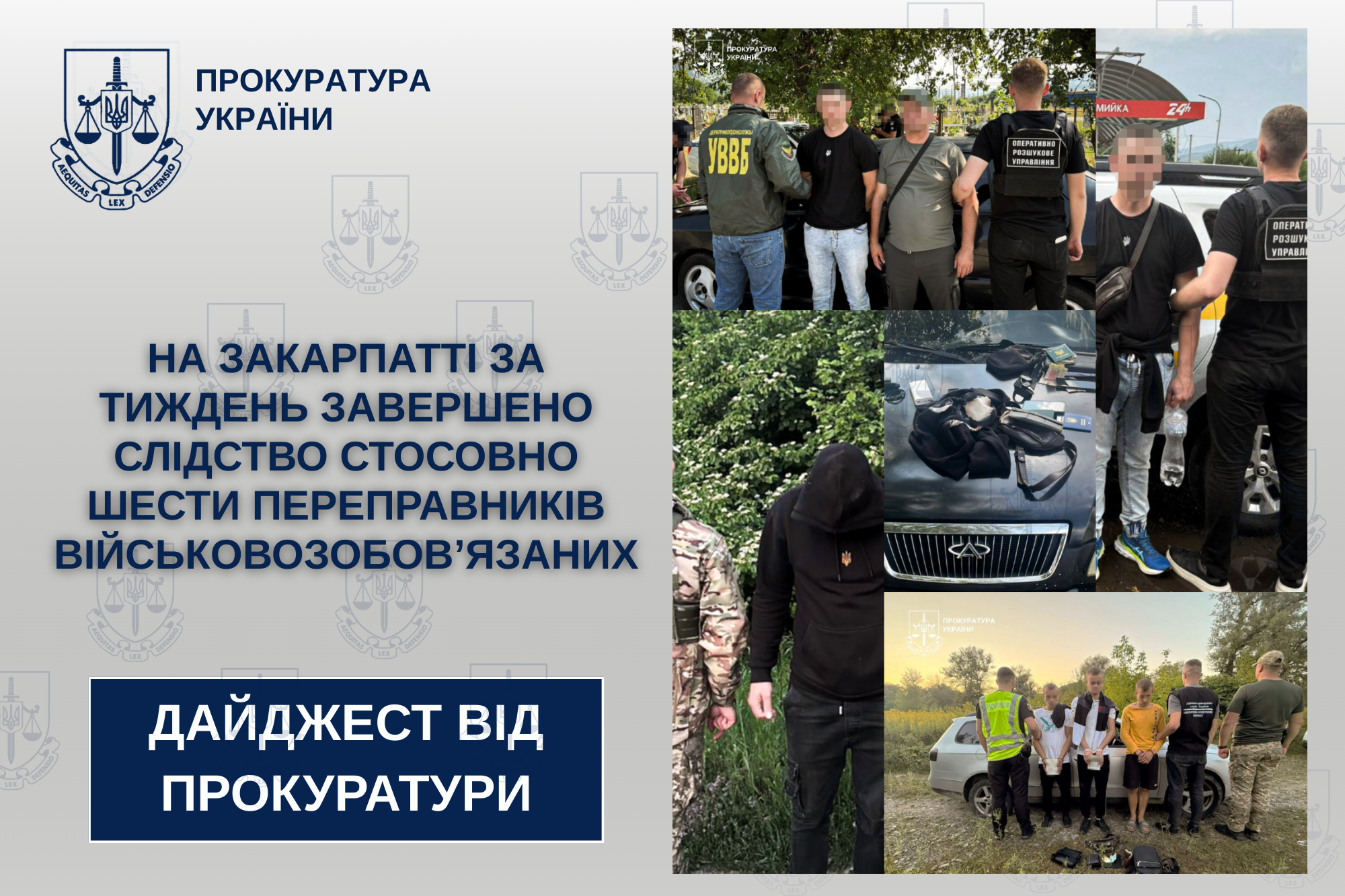 Тільки за останній тиждень прокурори Закарпаття скерували до суду обвинувальні акти стосовно шести осіб, причетних до організації незаконного перетину державного кордону України військовозобов’язаними. Загальна сума, яку розраховували отримати зловмисники складає майже 30 тис дол США.