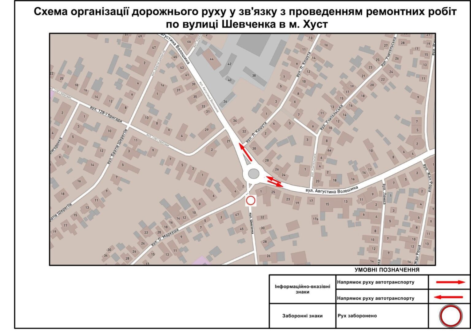 Рух транспорту по вулиці Шевченка в м. Хуст сьогодні заборонений