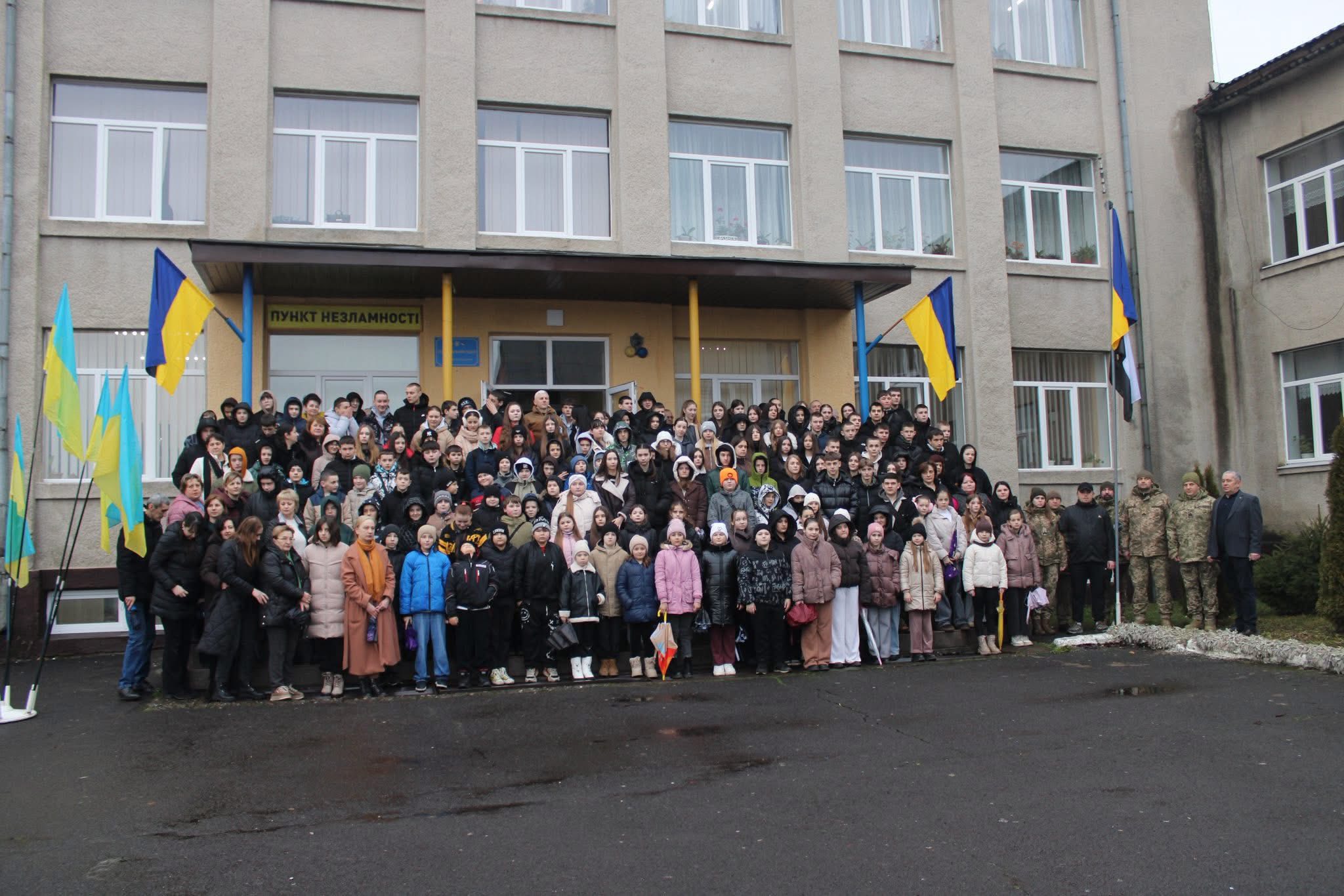 До заходу долучилися представники району, учні, педагогічний колектив та жителі громади. Особливо зворушливим моментом стало те, що почесне право підняти прапор було надано Василю Шимону – колишньому учню закладу, військовослужбовцю, який пройшов через полон та повернувся додому.