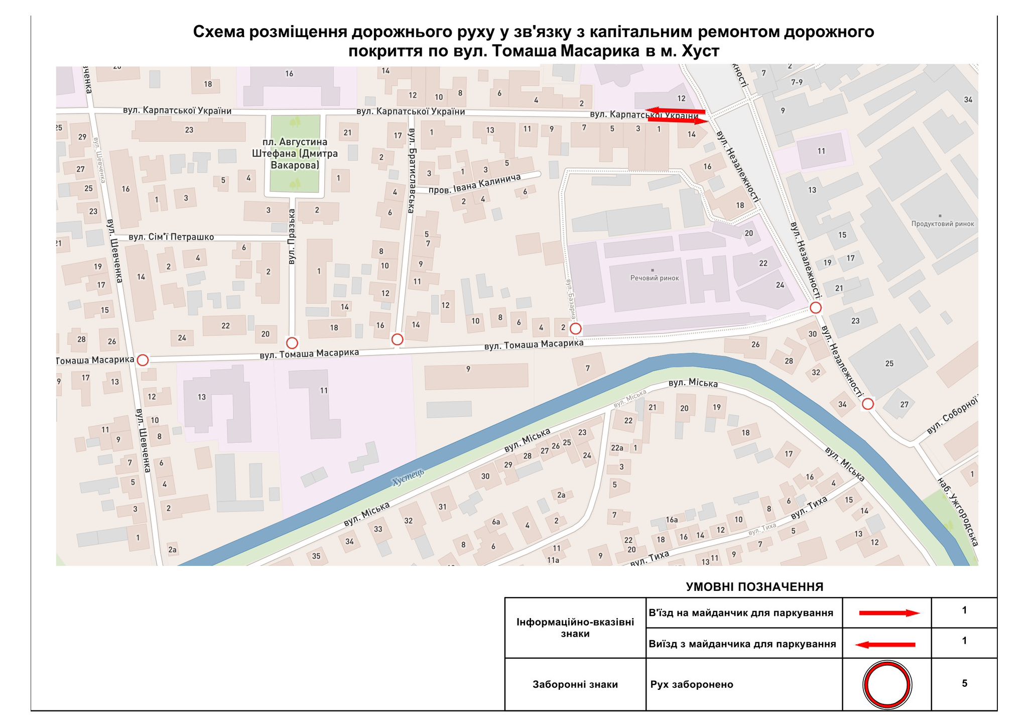 Рух автомобілів по вулиці Томаша Масарика буде заборонено до моменту завершення будівельних робіт.