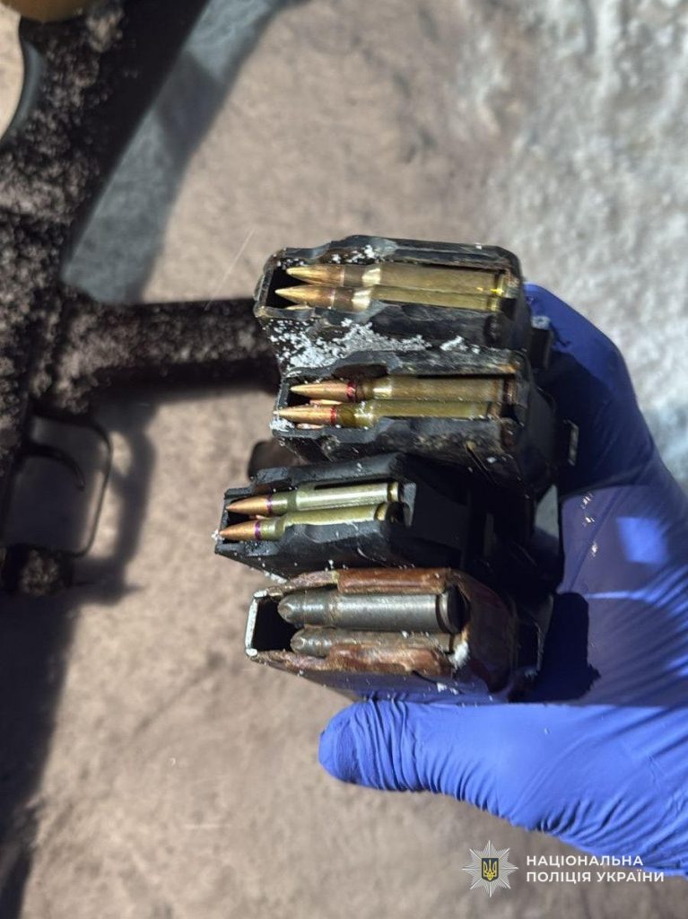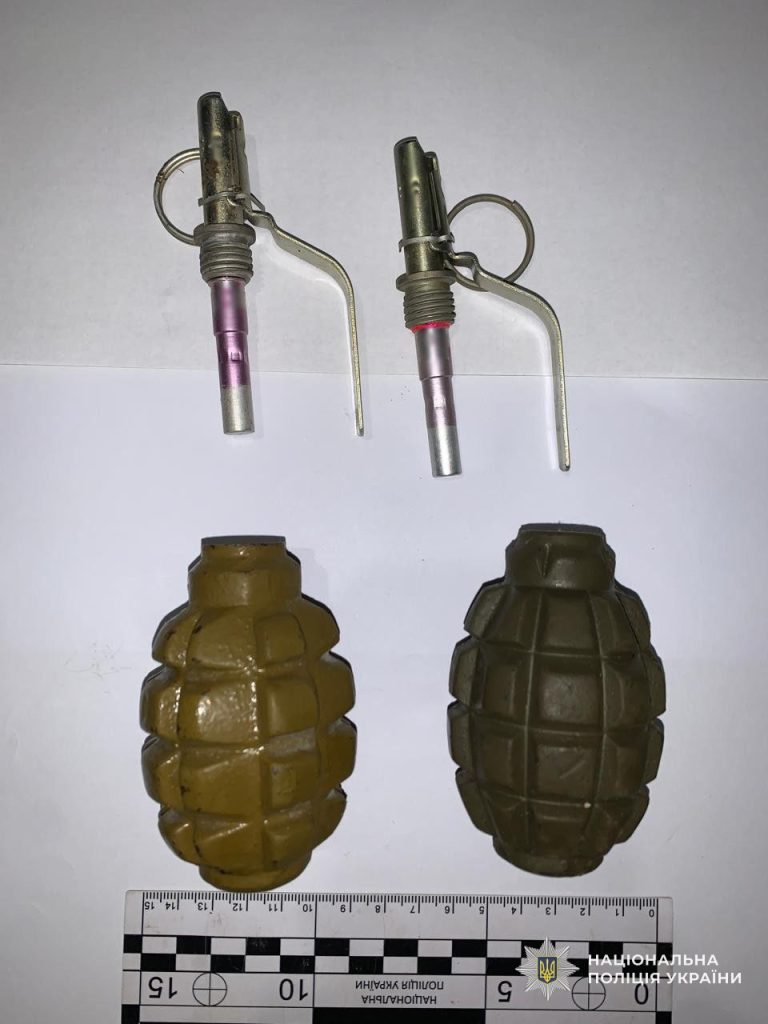 З місця події поліція вилучила автомат АК-74М, чотири магазини, споряджені 93 бойовими набоями, дві гранати Ф-1 із запалами, а також гроші, отримані незаконним шляхом.