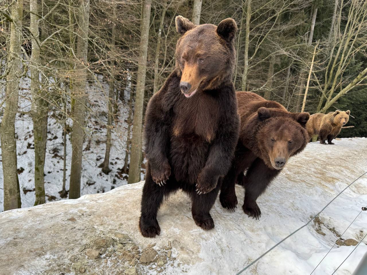 Сьогодні зима ще тримає гори в прохолодних обіймах, однак у Реабілітаційному центрі бурого ведмедя Національного природного парку «Синевир» уже відчувається подих весни. Частина мешканців центру почала поступово виходити зі стану зимової сплячки – цього року вона виявилася коротшою та менш глибокою, ніж зазвичай, інформує НПП «Синевир».