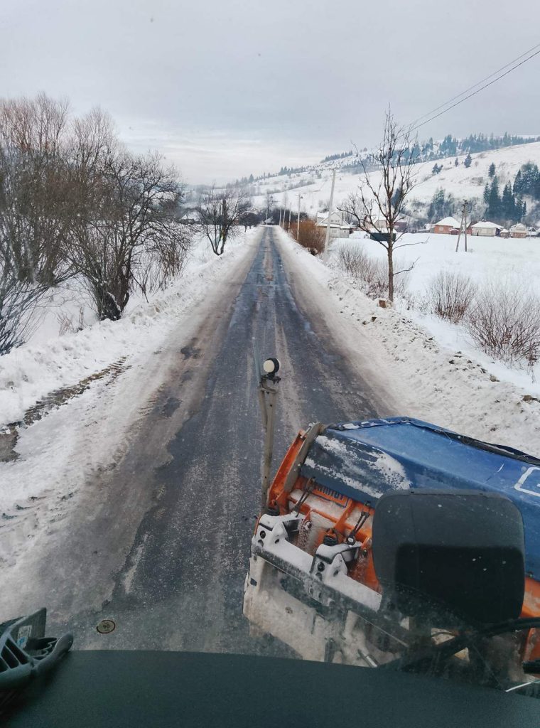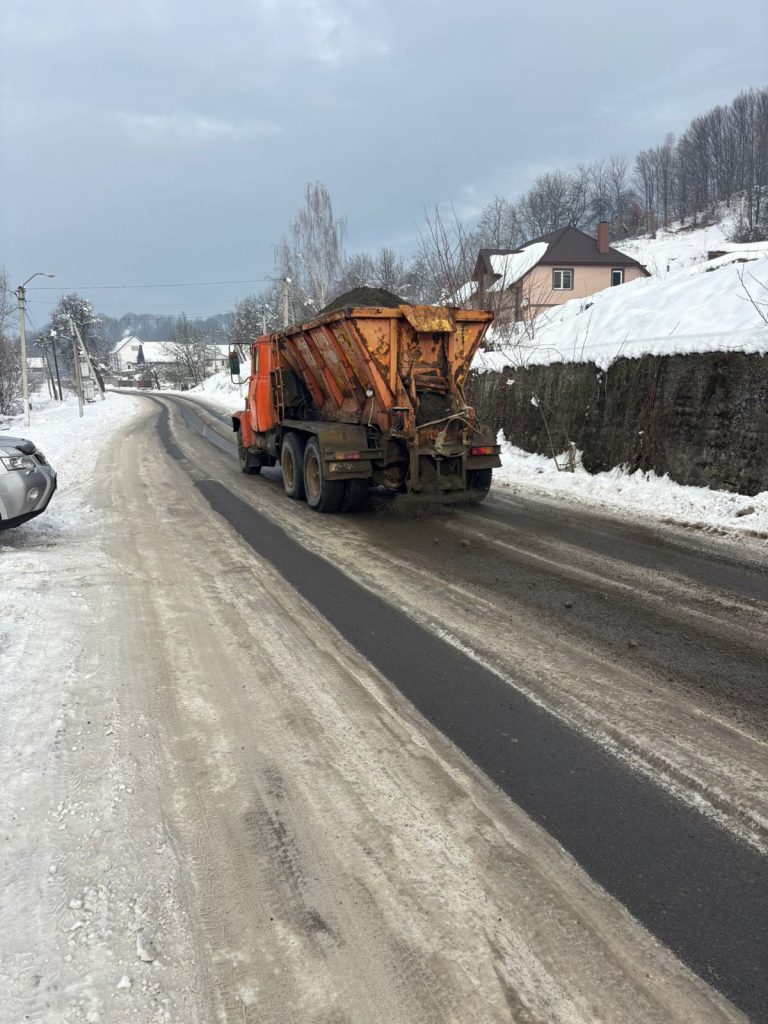 Зокрема, упродовж 20–22 січня виконано обробку дорожнього покриття протиожеледними матеріалами, що зменшує ризик утворення ожеледиці та покращує зчеплення коліс із дорогою, на таких напрямках:
