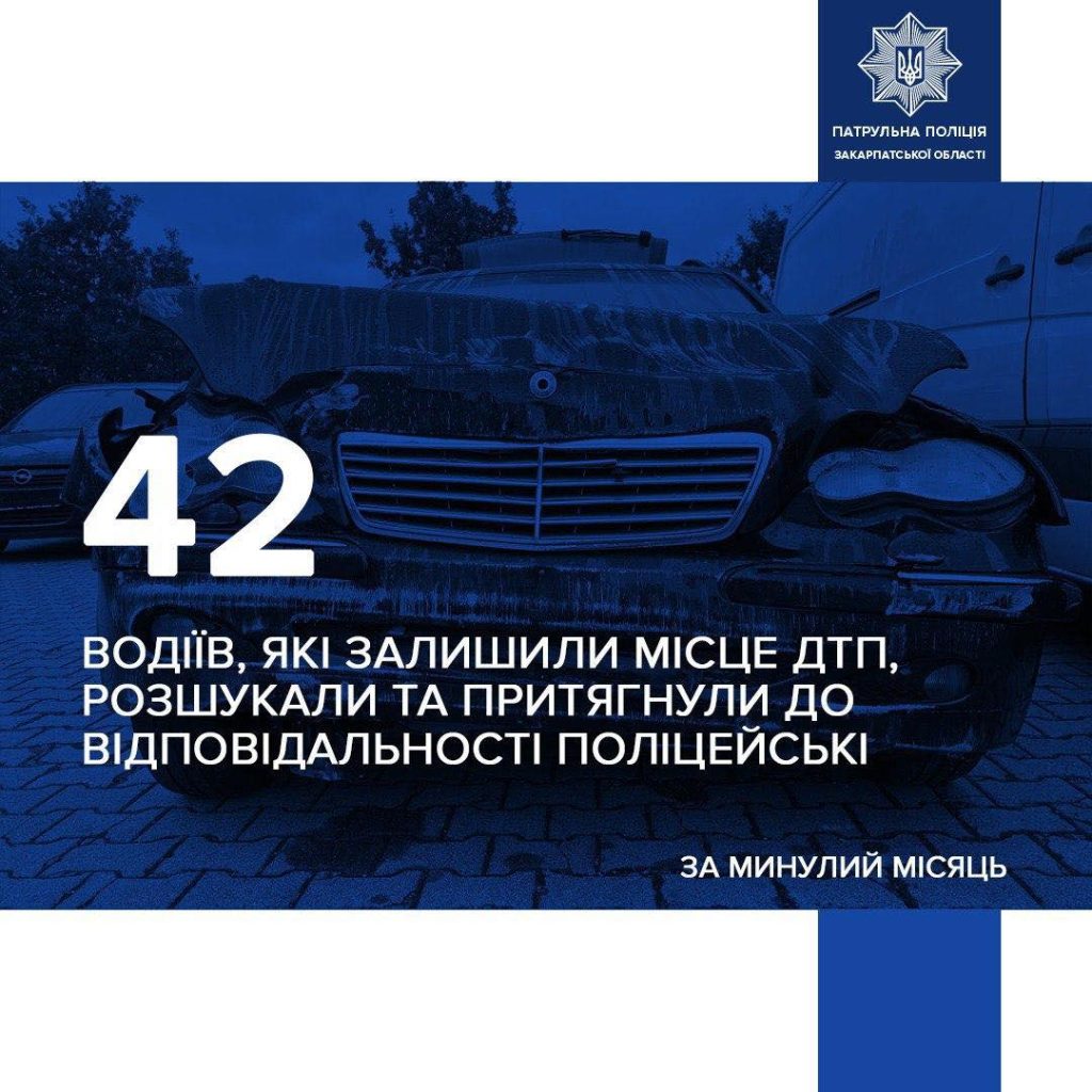 У серпні закарпатські поліцейські розшукали 42 водіїв, які залишили місце ДТП