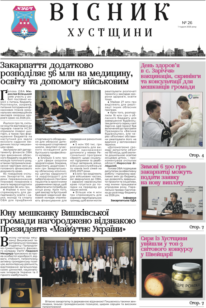 Вийшов новий випуск газети «Вісник Хустщини»
