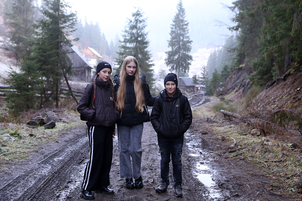 Троє Калиничів порозбігалися по класах. Знаходжу мовчазну усміхнену Іванку, вона вже за партою. З акуратними дбайливо заплетеними мамою косами. Ніби щойно вийшла з дому і перейшла вулицю. За кілька годин Іванка з сестрою і братом знову вирушить знайомою дорогою, але вже до затишного казкового будиночка високо в горах з неймовірними краєвидами.