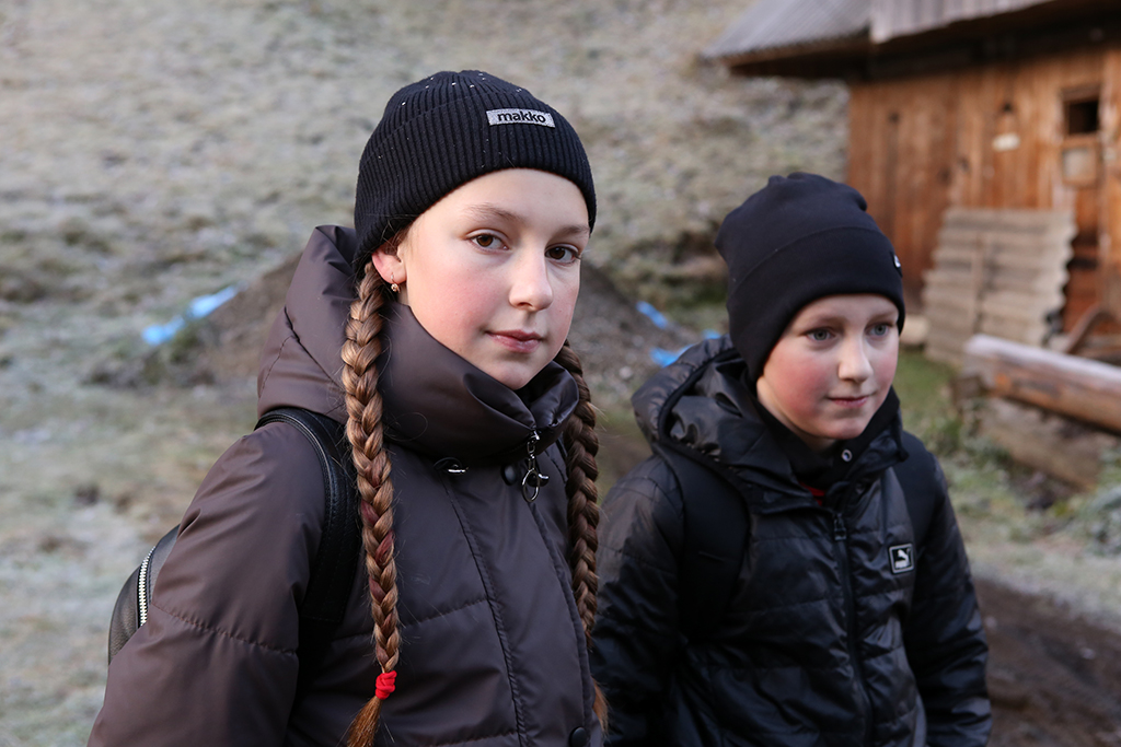 Троє Калиничів порозбігалися по класах. Знаходжу мовчазну усміхнену Іванку, вона вже за партою. З акуратними дбайливо заплетеними мамою косами. Ніби щойно вийшла з дому і перейшла вулицю. За кілька годин Іванка з сестрою і братом знову вирушить знайомою дорогою, але вже до затишного казкового будиночка високо в горах з неймовірними краєвидами.