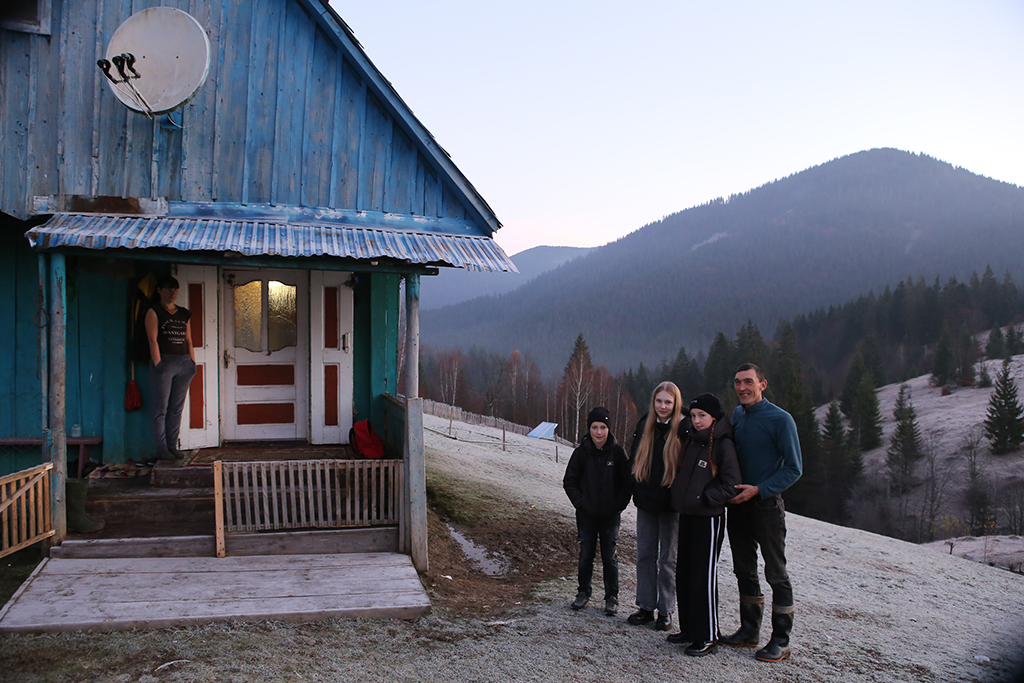 Ліс закінчується і перед очима постає неймовірна краса: небо світлішає і підкреслює довколишні краєвиди. Просторі пагорби в оточенні гір вкрив нічний приморозок. Посеред цієї краси як у казці світиться ґанок невеликого будиночка, на якому видніється висока чоловіча постать. І таки щось гавкає. Але це песики, які з господарем зустрічають світанкових гостей. Будиночок не спить: відкриває свої двері, огортає теплом з морозу і знайомить родиною Калиничів. Федір, Василина та 4 їхніх дітей. Троє з них якраз збирають до школи, старший 16-річний Іван зліг з гарячкою.