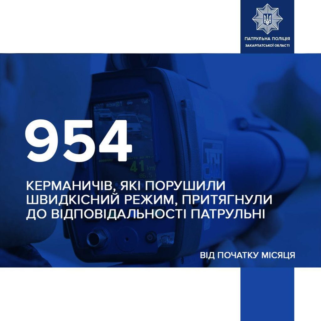 Від початку місяця патрульні поліцейські винесли 954 постанови за перевищення дозволеної швидкості.