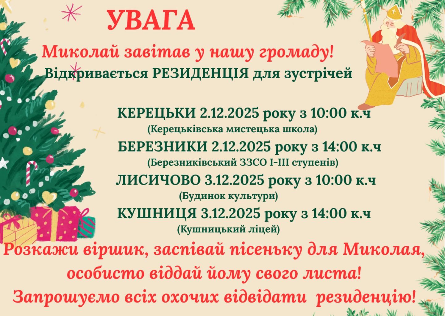 Стали відомі локації Резиденцій Святого Миколая у Керецьківській громаді
