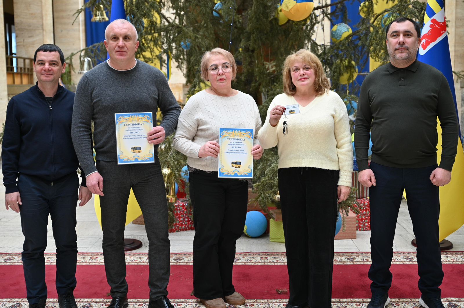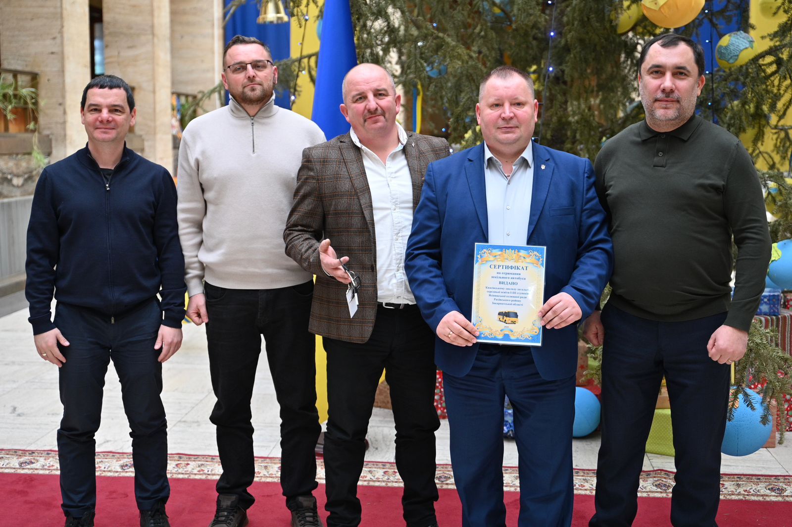 За дорученням голови ОВА його заступник Юрій Гузинець передав ключі від автобусів представникам Рахівської, Ясінянської, Дубівської, Буштинської, Усть-Чорнянської, Міжгірської, Вишківської та Іршавської громад.