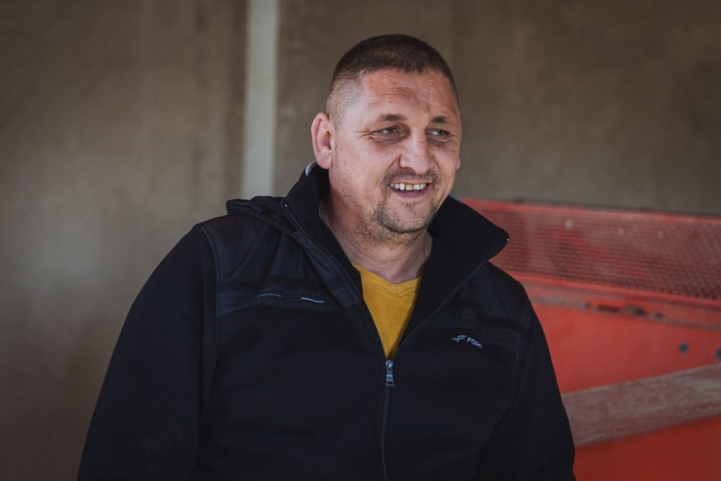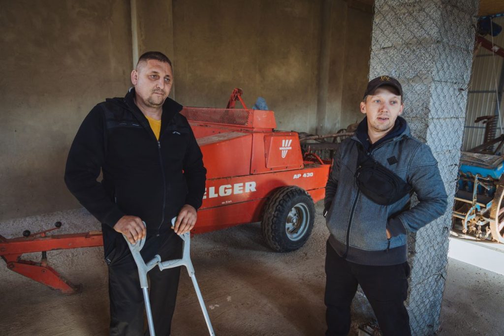 Юрій – місцевий, все життя працював з технікою: на тракторах, фурах. 11 років тому внаслідок аварії втратив обидві ноги. Попри це, справу не полишив. І тепер, із двома протезами – знову за кермом: працює для громади, даючи раду з трактором на автоматичній коробці передач. Два таких трактори спеціально придбали для проєкту, аби було зручніше вправлятися.