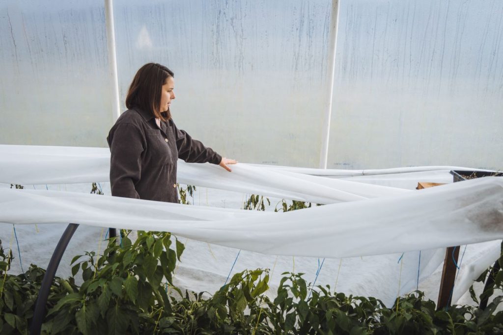 – Нині у двох теплицях ми вирощуємо органічні овочі – помідори й перець на консервацію. Взимку вирощуємо гриби, – відгортає Анастасія з кущів перцю плівку після ночі, аби ті «дихали».