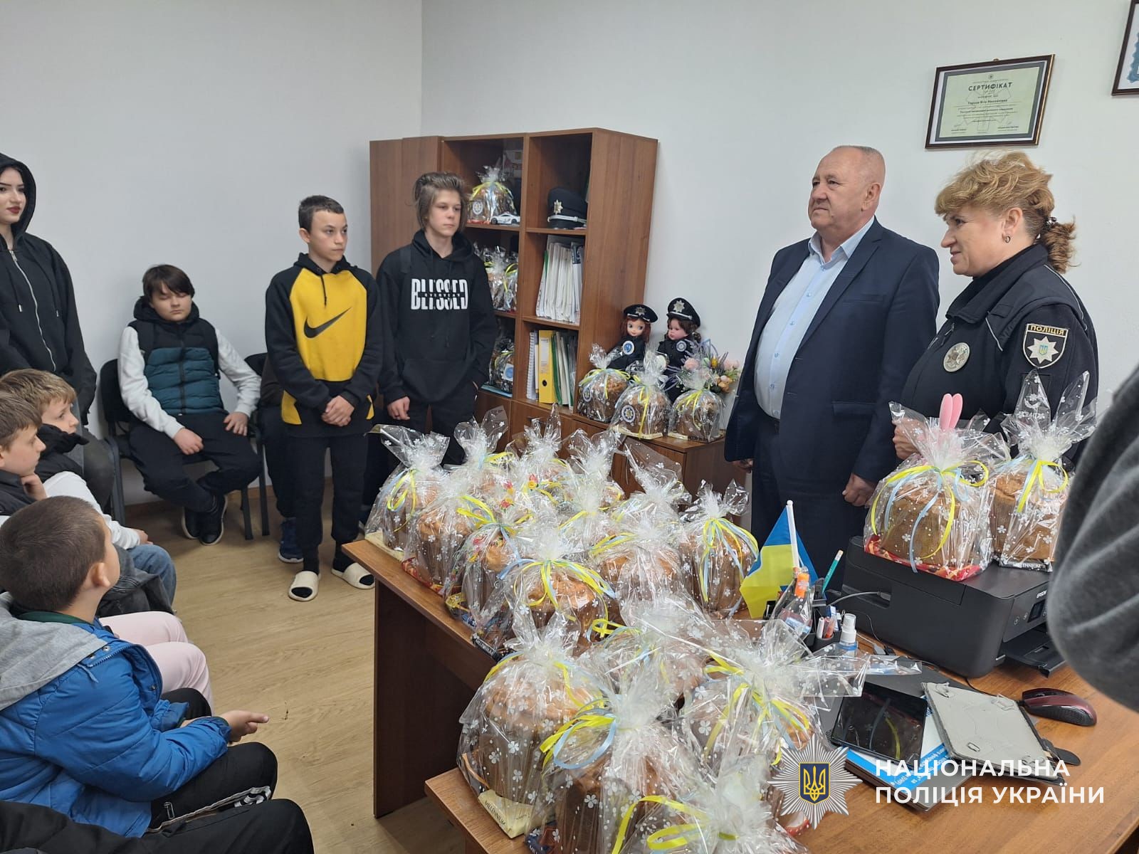 Захід відбувся на базі поліцейської станції. Дітям вручили святкові великодні набори, привітали зі святом та побажали миру, тепла і добробуту.