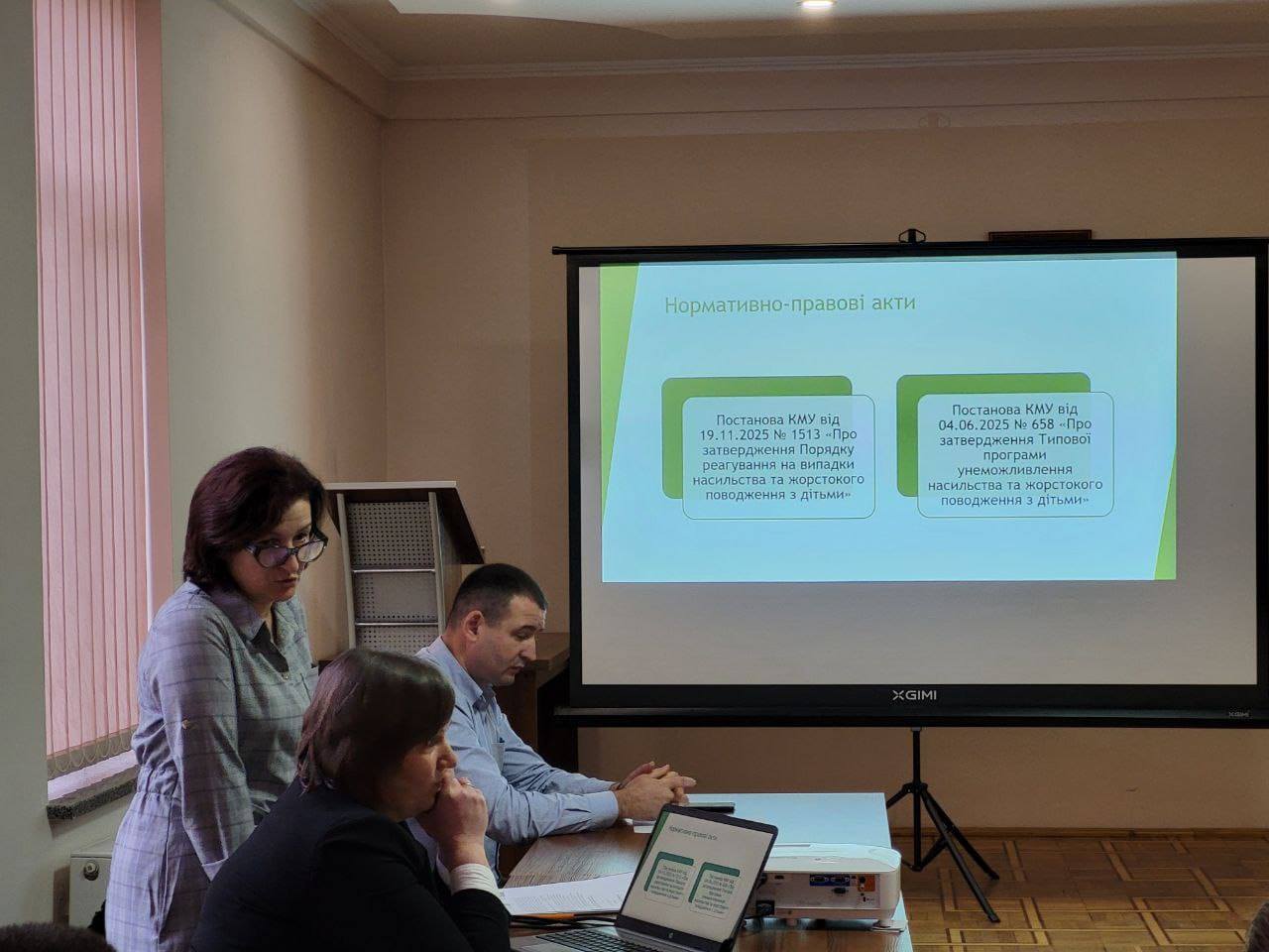 Участь в заході взяли керівники закладів освіти громади, з якими обговорили зміни в законодавстві щодо реагування на випадки насильства та жорстокого поводження з дітьми, а також механізми взаємодії закладів освіти з іншими суб’єктами, відповідальними за захист дітей.