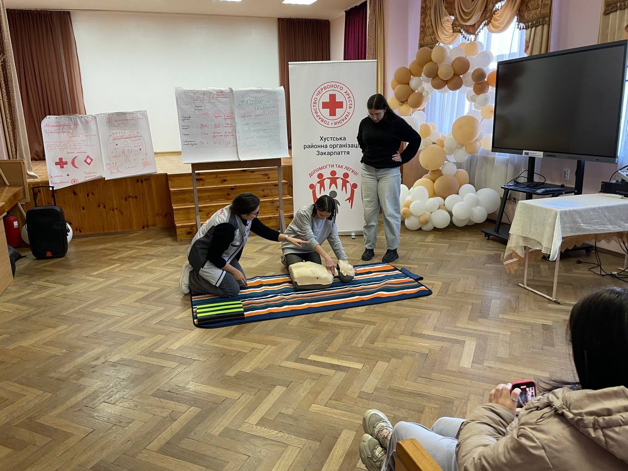 Днями інструкторка Хустської районної організації Товариства Червоного Хреста України провела захопливі навчання з надання першої допомоги для учнів Хустської СШ №1 ім. А. Волошина.