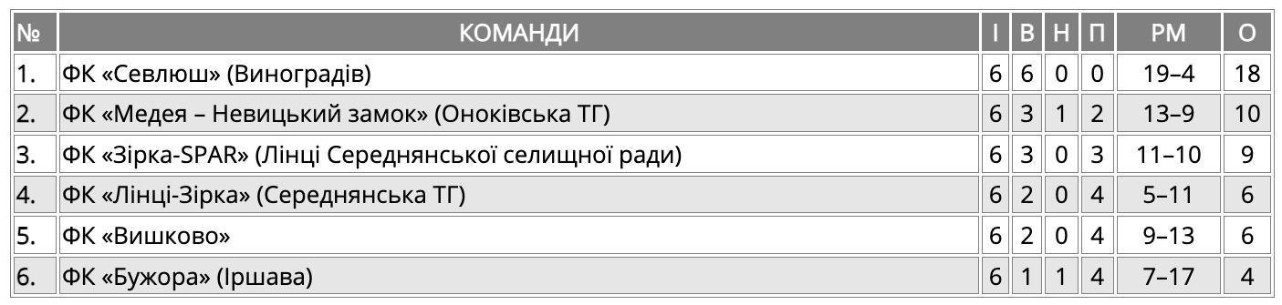ФК «Севлюш» (Виноградів) – ФК «Зірка-SPAR» (Лінці Середнянської селищної ради) – 2:1,