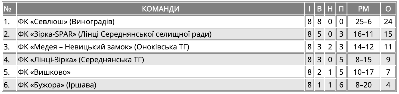 ФК «Севлюш» (Виноградів) – ФК «Лінці-Зірка» (Середнянська ТГ) – 4:2.