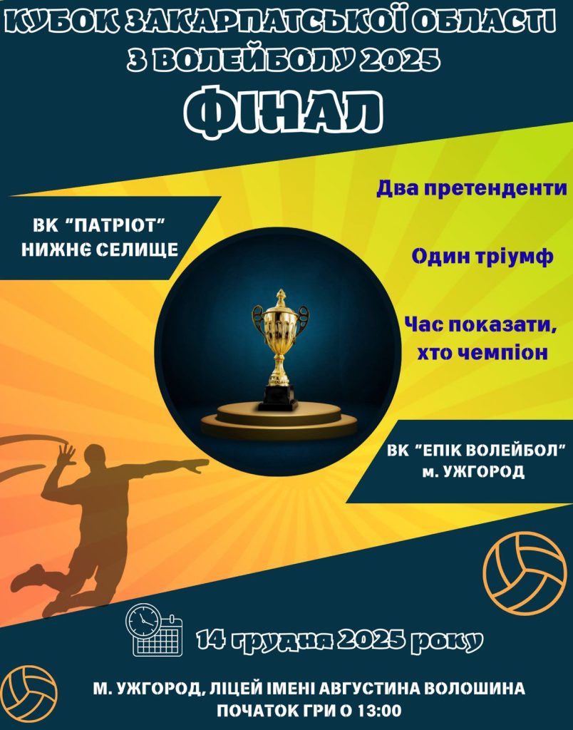 У фіналі ВК «Патріот» зустрінеться з ВК «Епік Волейбол» (м. Ужгород). Це вирішальна гра, де визначиться володар Кубка Закарпаття, повідомляє Управління культури, молоді і спорту Хустської міської ради.