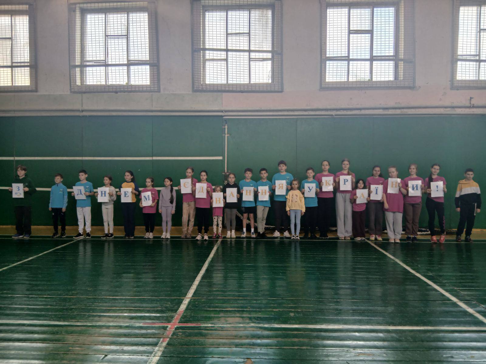 Під спільним гаслом «Спорт об’єднує» юні спортсмени продемонстрували згуртованість та незламний командний дух, синхронно виконавши комплекс вправ, що став символом злагодженості та сили нашої молоді. На завершення заходу учасники підняли літери з написами «З Днем єднання України» та «Разом — ми сильніші», підкреслюючи нерозривний зв’язок між фізичним гартом та національною єдністю.