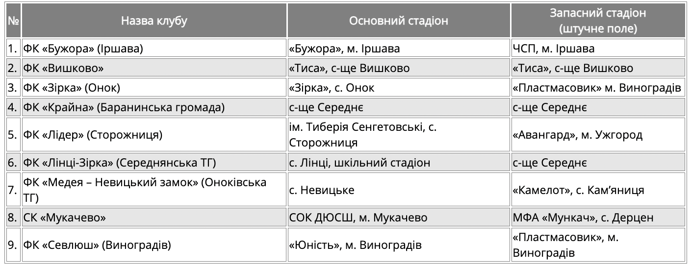 22 лютого розпочнеться чемпіонат Закарпаття 2026 року серед аматорських команд. Команди повідомили, де гратимуть свої домашні матчі.